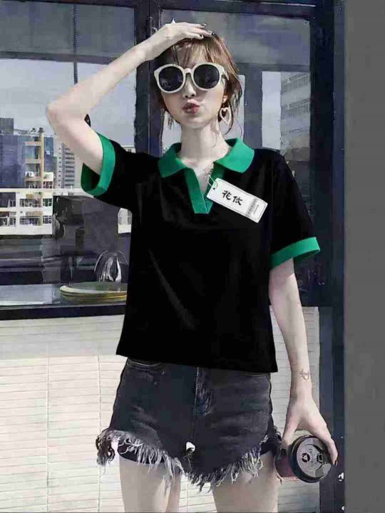 5.9元,靓妹短袖V领T恤棉质辣妹polo衫,562件,M-2XL,独立包装吊牌,全清5...