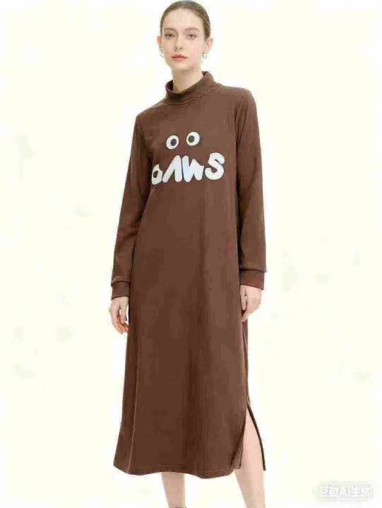 韩版学院风字母卫衣裙宽松休闲甜美长裙温柔长袖加绒连衣裙女秋冬新款【图条...