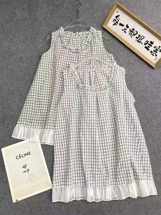 韩系复古无袖上衣170件6.9,格子花领口,拼接设计,码数2-3码,独立包装。 ...