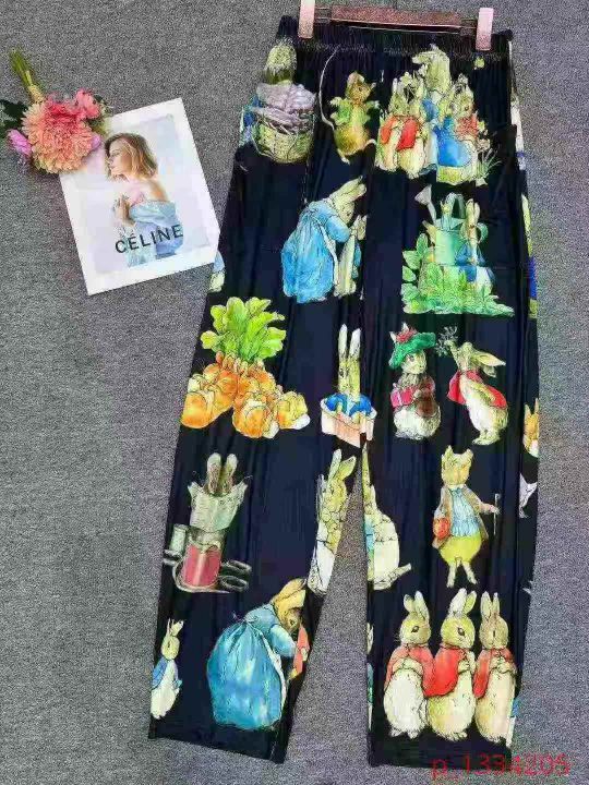 欧美外贸春夏宽松卡通兔子印花宽松阔腿裤可外穿宽松口袋长裤,只有黑色,独...