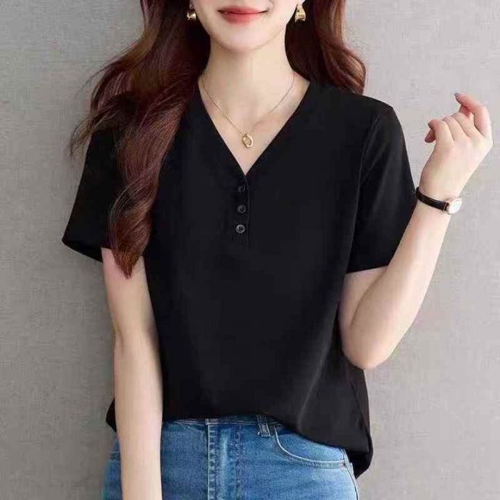 [月亮]:5.8清580件[月亮]:夏季新款纽扣V领休闲短袖T恤[月亮]:M-XXXL 独...
