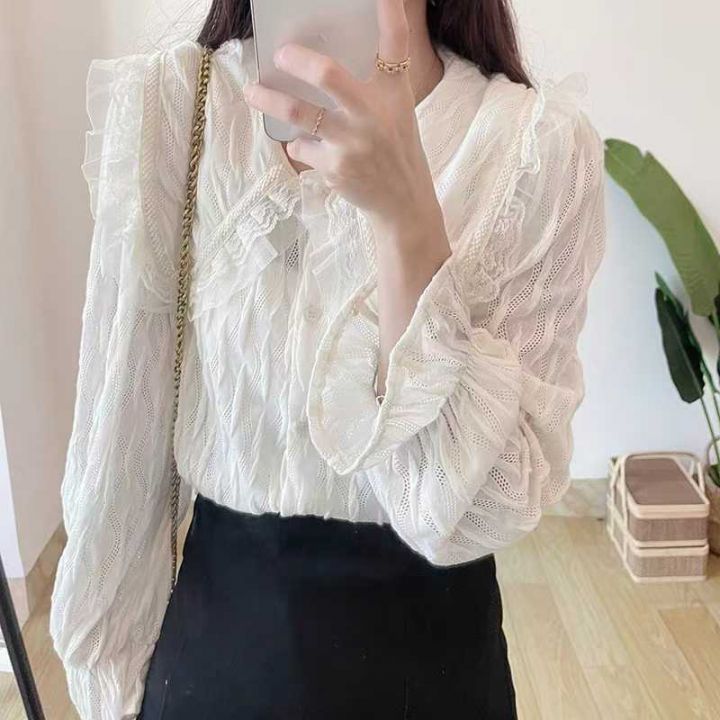 欧货大码女装,法式大翻领洋气甜美设计感蕾丝衫,150件,黑白色,180-210码...