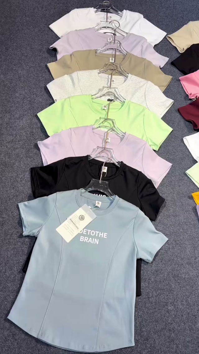 2026女士短袖 爆款正肩螺纹面料鱼骨T恤,弧形下摆修身百搭又显瘦,糖果彩色...