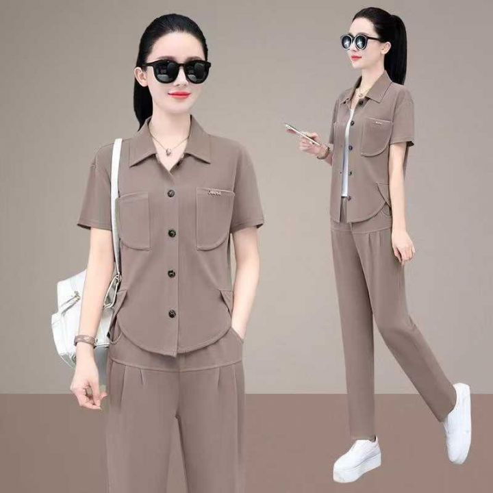2025新款减龄显瘦洋气女士薄款短袖长裤两件套,500套