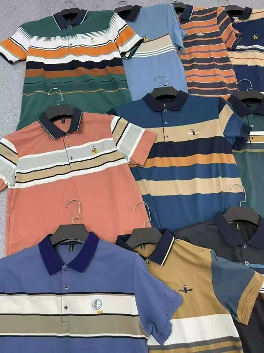 高品质男装大条纹刺绣翻领短袖T恤☕️4800件全清14.8元,分货16元,码数50-...