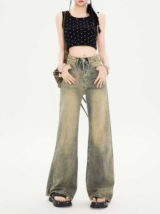 高品质☕️美式复古水洗做旧宽松版阔腿裤百搭新款宽松显瘦牛仔长裤530条全...