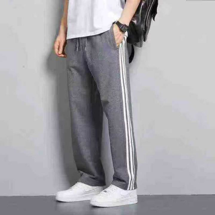 ☕️男女同款卫裤 毛圈棉不加绒条纹三条杠休闲长裤子男士卫裤宽松直筒运动...