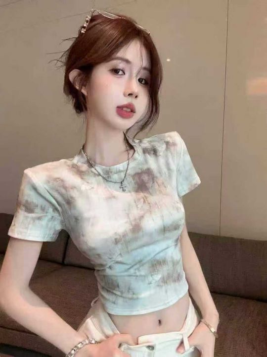 ☕️美式扎染辣妹T短袖t恤女夏季纯欲甜辣妹短款独特别致半袖710件全清7.8元...