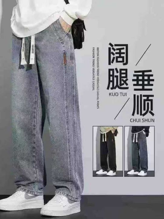 潮牌男装松紧腰牛仔阔腿裤2200条全清13.8元分货+1元,码数S到3XL,统一工厂...