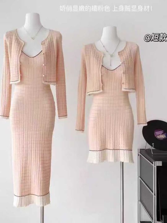针织裙套组温柔开衫纯欲吊带裙,60多套