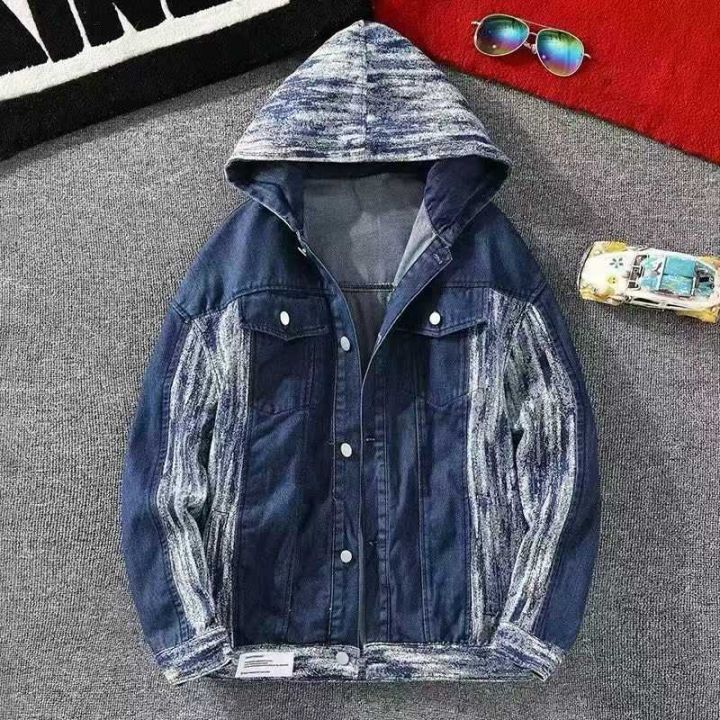 美式复古连帽牛仔外套男潮牌ins宽松百搭夹克韩版潮流假两件外套200件,独立...