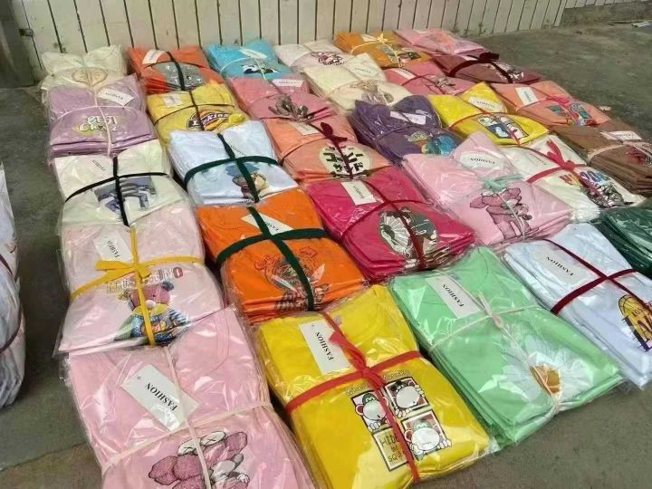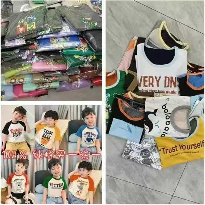 ☕️纯棉统一面料200克精梳棉包边童装短袖,90-160码,花型颜色多多,地摊...
