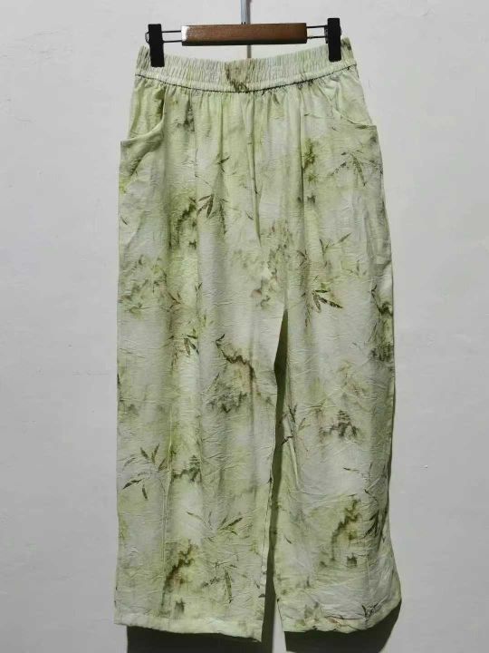 冰丝皱国风竹叶休闲哈伦裤[玫瑰][玫瑰][玫瑰]工厂直销2XL-5XL 100条起...