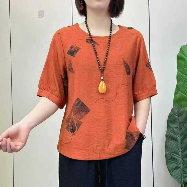 ☕️2800件全清6.9元,300件起8元,妈妈名族风圆领短袖T恤,宽松版,冰丝面...