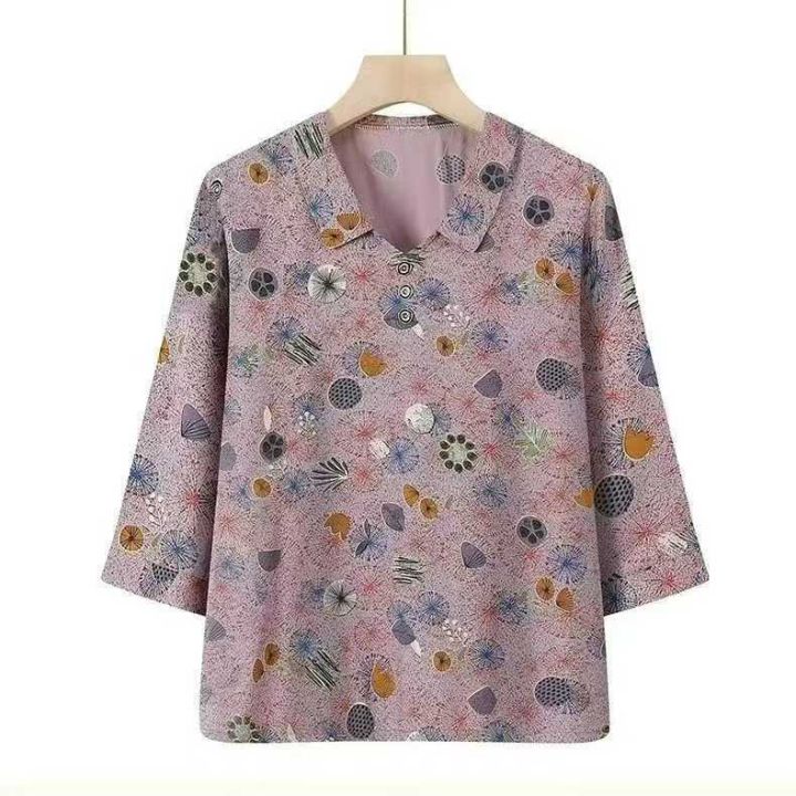 ☕️中老年妈妈7分袖上衣大量货源,冰丝面料款式多,跑量9.9元钱,100件批...