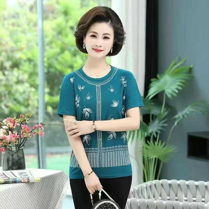中老年妈妈装碎花短袖冰丝衫,冰凉感吊坠上衣几元钱批!300件起批7.8元,款...