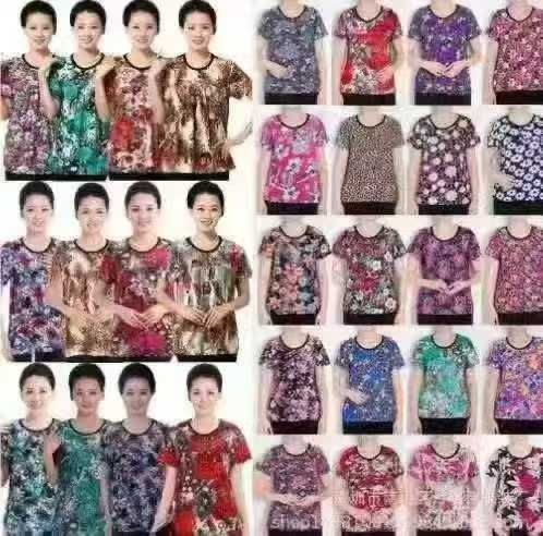 中老年妈妈装碎花短袖冰丝衫,冰凉感吊坠7.8元钱批!300件起批,款式花色超...