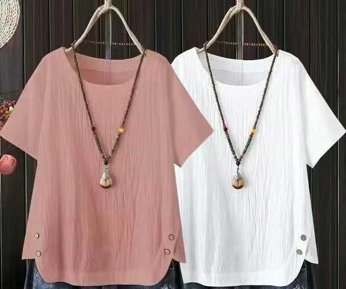 ☕️1000件清仓10.9元,200件起11.9元,妈妈天丝麻宽松版短袖上衣 大版型 5...