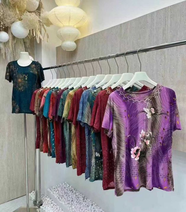 中老年烫金短袖[玫瑰][玫瑰][玫瑰]均码批发跑量8.5