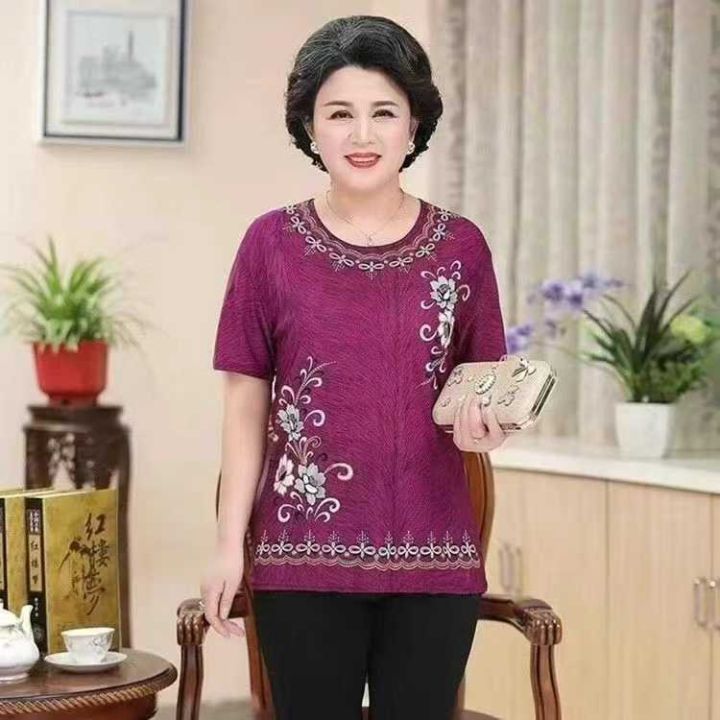 14.9元打包,100件起,中年妈妈夏装短袖冰丝衫洋气套装中老年人女装夏季上...