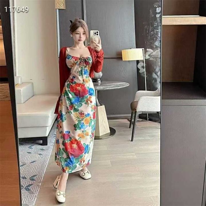 100多套EIA一尧【加州梦境同款,套装大码港风复古碎花连衣裙女夏季短款开衫...