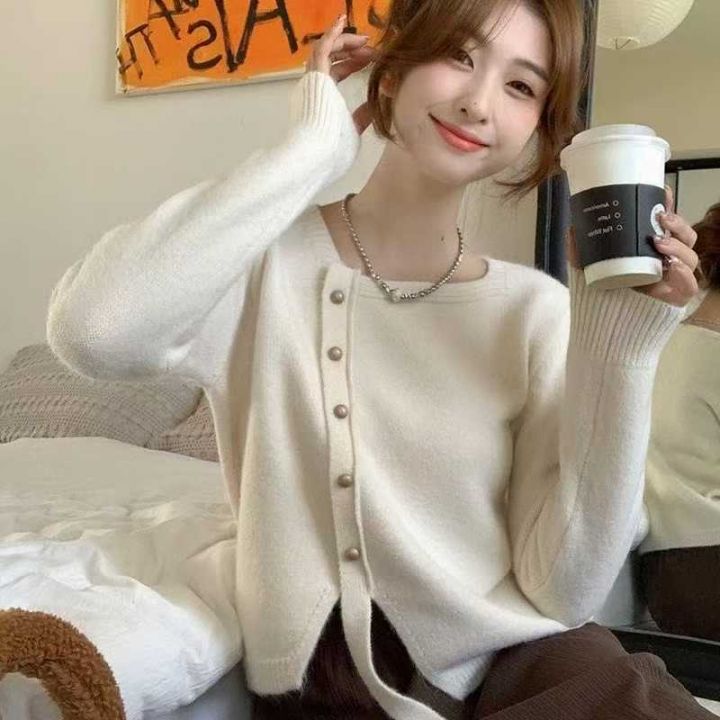 上新全清:12.8一件高级感不规则排扣小众别致针织开衫,[爱心]45件左右,均...