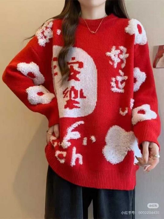上新全清:9.9一件慵懒风软糯好运红色百搭针织毛衣,[爱心]45件左右,均码...