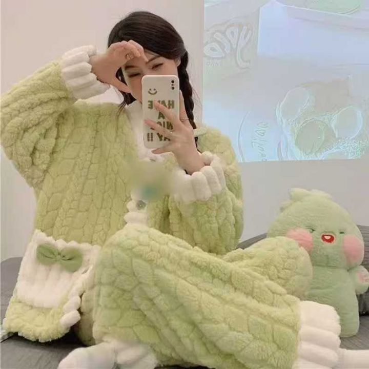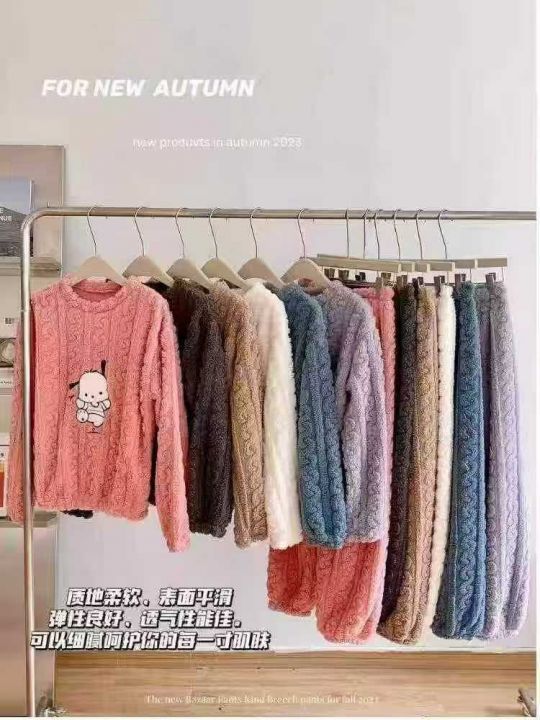 ☕️珊瑚绒睡衣套装女哈帕狗提花保暖卡通可爱加绒加厚可外穿家居服,50套起...