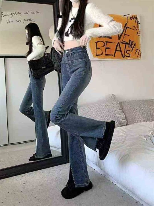 秋季新品高弹力网红微喇叭开叉牛仔裤,独立包装带腰卡,码数XS--L码(码数...
