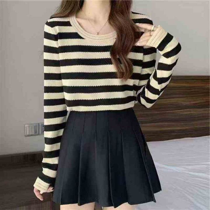 春秋款新品撞色条纹宽松正肩长袖针织衫,独立包装,均码面料柔软舒适,520...