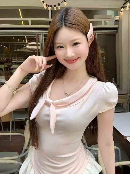 上新全清:7.8一件韩系甜美撞色水手领绑带收腰显瘦上衣,[爱心]165件左右,...