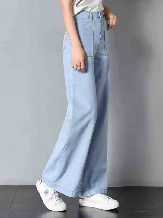 高弹力网红高腰喇叭开叉牛仔裤女,单款四色,独立包装带吊牌,码数25-32,...