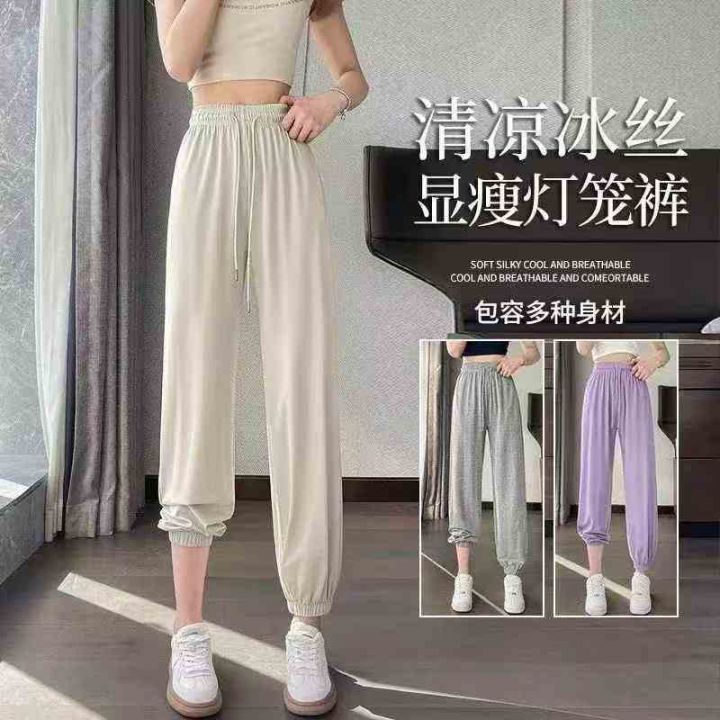 清货秒杀价7.8,数量420条左右,分货+1 女冰丝束脚休闲运动裤薄款垂感显...
