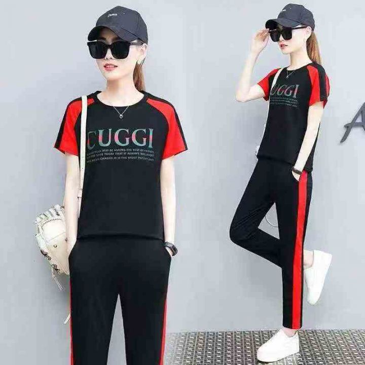 短袖长裤运动套装女夏时尚纯棉宽松跑步服休闲两件套,数量110套,码数ml3xl...