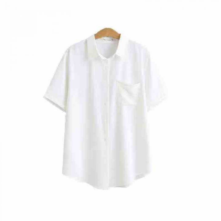清仓4.978件气质简约纯色短袖衬衫宽松百搭装翻领开衫 衬衫上衣 S-XL码,独...
