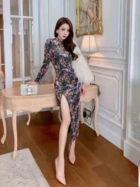 100左右秋装复古日常可穿高贵名媛气质中国风显瘦旗袍改良版长款连衣裙!尺...