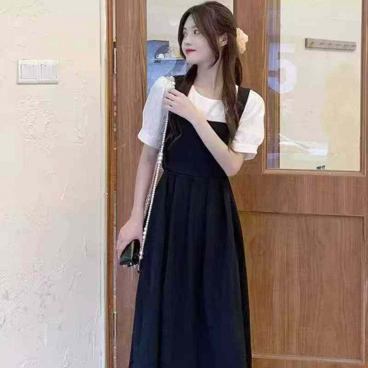 9.9清电商仓回收102件少女风拼接假两件收腰显瘦韩版连衣裙,码数S-2XL。面...