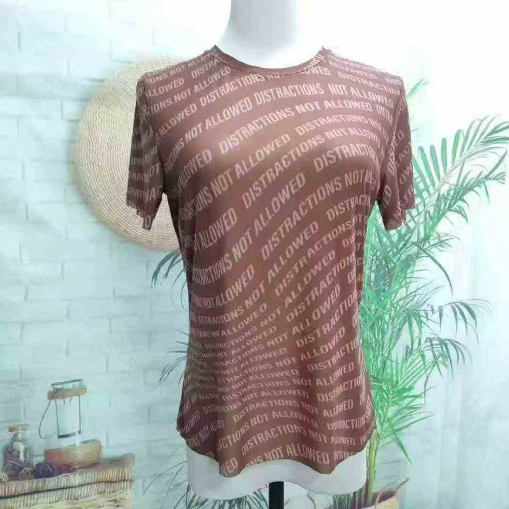 冬季清仓!2.2元[發][發] 网纱字母款薄款时尚体恤,弹力十足,十件一包,...
