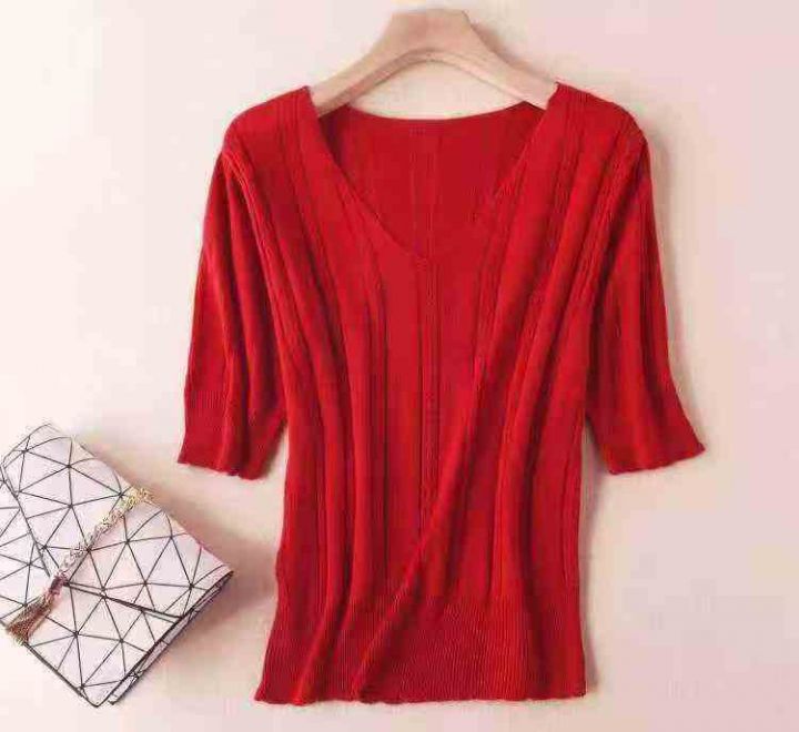 2.8元秒杀[爱心][爱心] 七分袖女士v领针织打底衫内搭毛衣,弹力很大,一包...