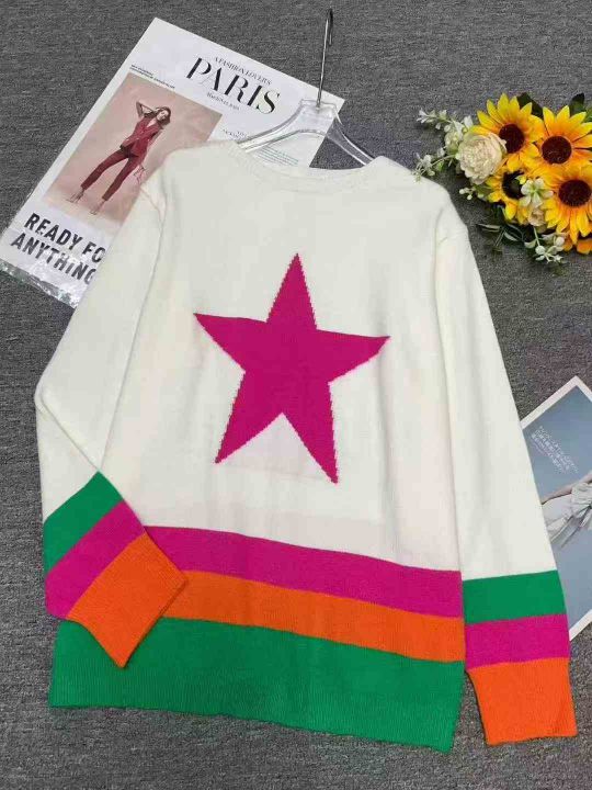 秋季新品设计款撞色条纹圆领套头毛衣,独立包装,均码面料软糯舒适弹力大,...