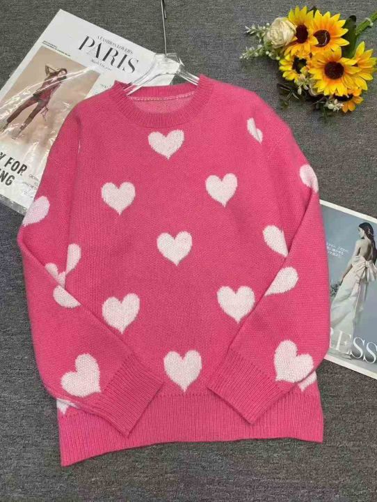 秋冬新款宽松爱心提花中长款遮屁慵懒风北极绒套头毛衣,独立包装,码数S--2...