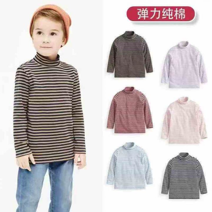 500件左右男女童半高领打底衫条纹长袖T恤秋冬款儿童装宝宝秋衣上衣冬季,半...