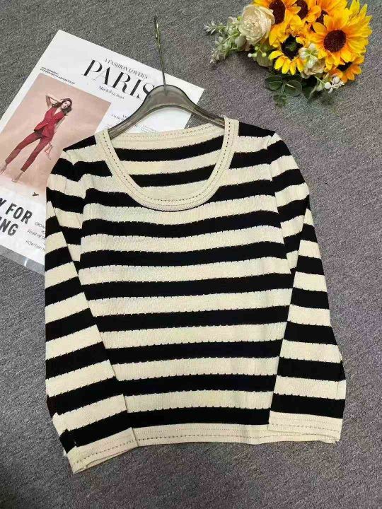 春秋款新品撞色条纹宽松正肩长袖针织衫,独立包装,均码面料柔软舒适,1020...