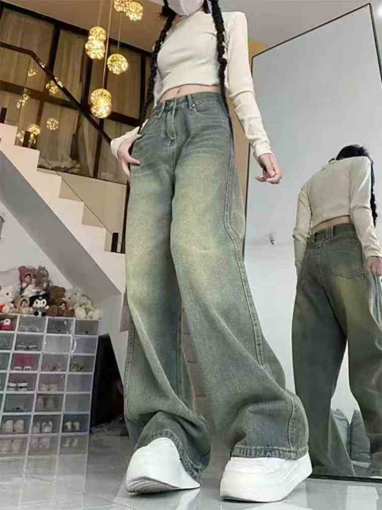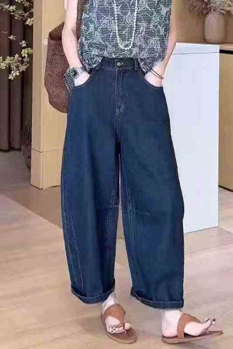 #牛仔裤批发复古水洗棉正腰 高腰弯刀牛仔阔腿宽松显瘦休闲牛仔裤潮流裤子,...