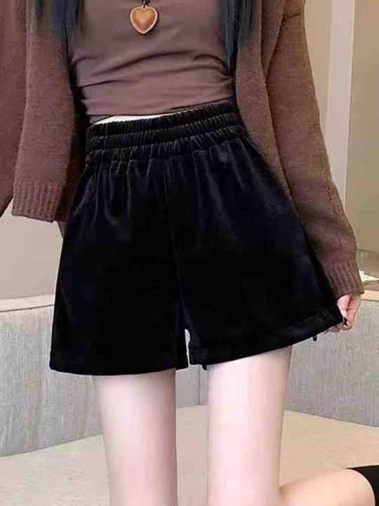 上新全清:9.9一件时尚ins金丝绒松紧腰设计宽松百搭短裤,[爱心]70左右,咖...