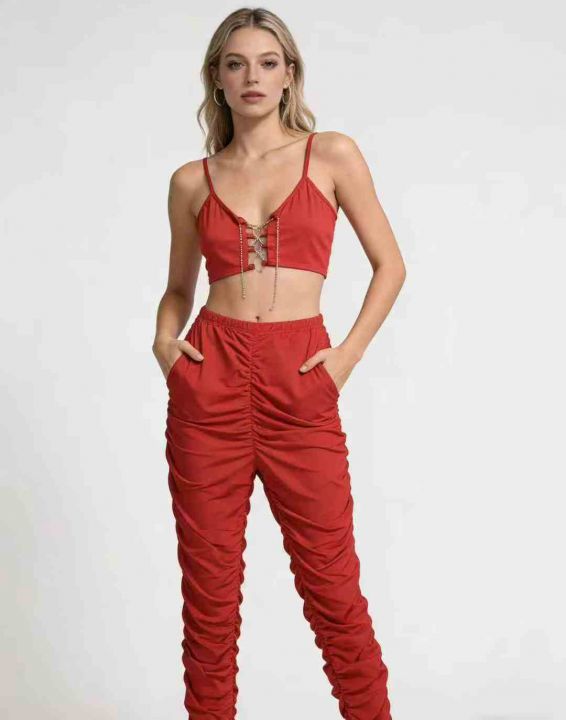 6.8清欧美时尚辣妹性感吊带+褶皱长裤两件套,整款三色,数量:217套,码数...