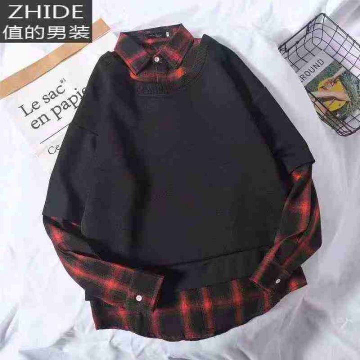 爆款假两件棉质卫衣春秋新款美式复古格子上衣宽松休闲,数量3400件,码数m-...