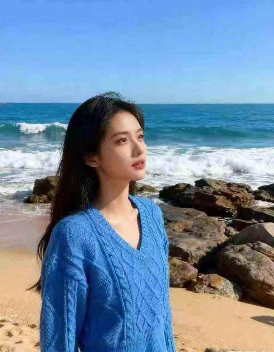 全清10.8,欧货重工克莱因蓝色v领麻花毛衣女秋冬慵懒风短款内搭针织...