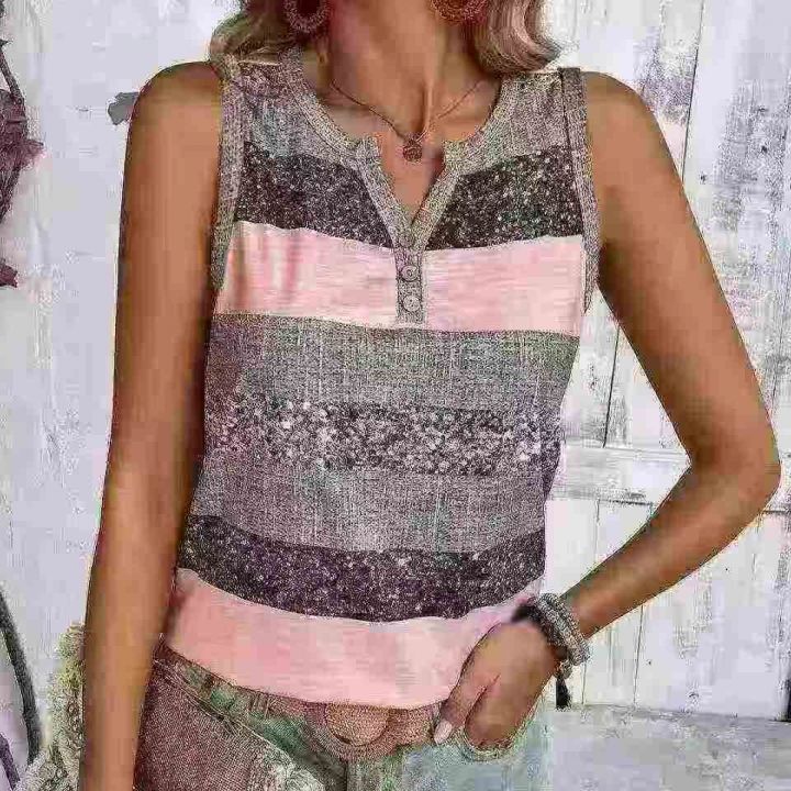 复古条纹背心吊带宽松显瘦V领宽松通勤夏季穿着舒适女士印花仙气,独立拉链...