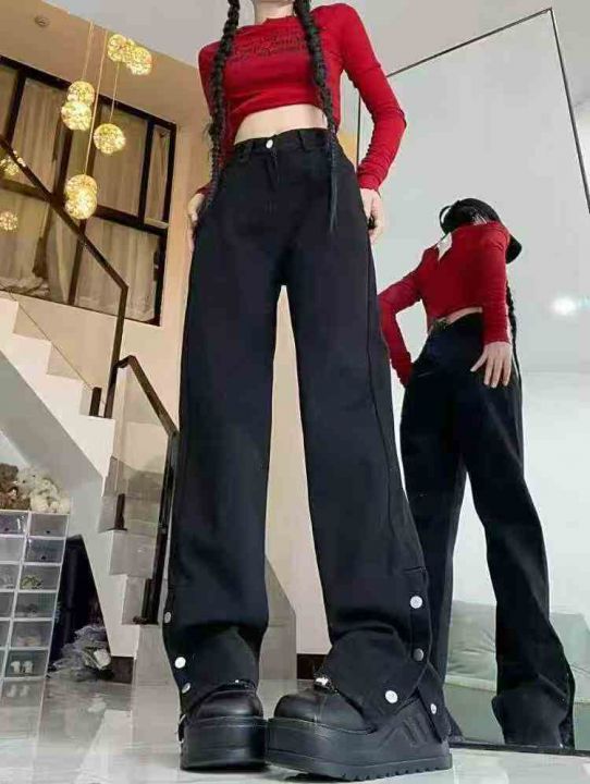 秋冬新款黑色宽松百搭排扣设计款洗水棉牛仔直筒烟管裤,独立包装带吊牌,码...